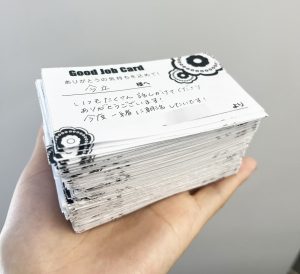 社員が「Good Job」と感じた行動に対して専用カードにメッセージを記入し、所定のBOXに投函します。 -